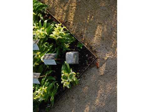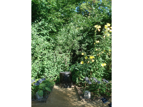 Le visiteur ayant pénétré dans le jardin se retrouve finalement dans une disposition de plantes de plus en plus archaïque, dévoilant à l’arrière des buissons de petits foyers de végétation abondante, fleurie et odorante.